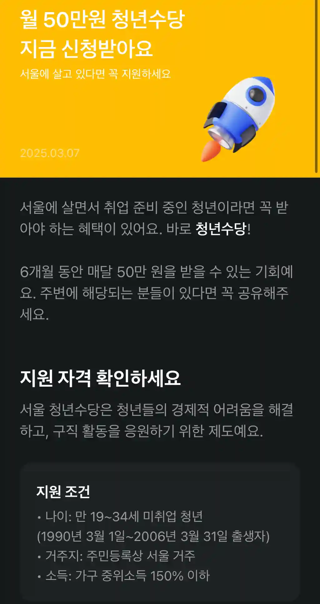 ✅ 청년수당 지원 대상자 기준 (2025년 기준)