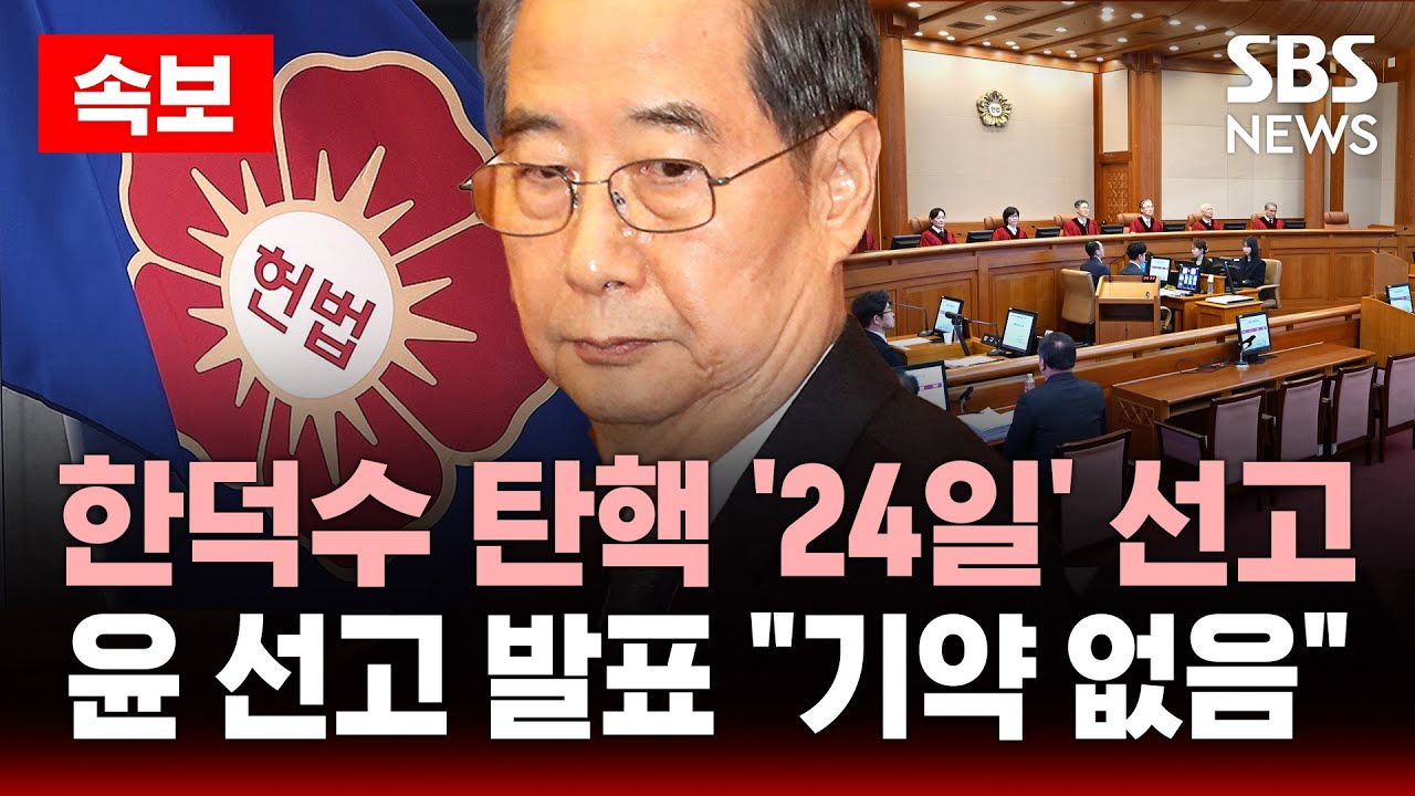 2024년 12월 27일, 국회는 한덕수 국무총리에 대한 탄핵소추안을 가결하였습니다. 이후 헌법재판소는 2025년 3월 24일 오전 10시를 선고기일로 지정하며, 탄핵심판 절차가 본격화되고 있습니다. 조선일보+5알파경제+5비즈니스포스트+5비즈니스포스트+1YouTube+1