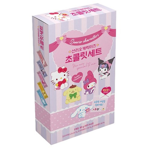- 구성: 쿠로미, 헬로키티, 마이멜로디 등 다양한 캐릭터 포장이 포함된 초콜릿 세트입니다.원하는 상품을 원하는 시간에 쓱, 이마트몰+1네이버 블로그+1